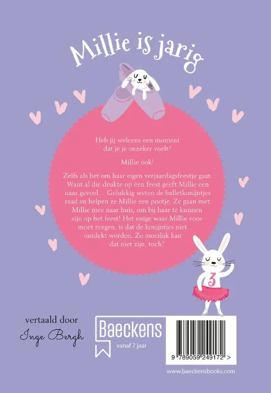 Millie is jarig. Haar moeder organiseert een groot feest. Normaal ben je dan blij. Maar Millie niet. Al die drukte op een feest geeft Millie een naar gevoel… Gelukkig weten de balletkonijntjes raad en helpen ze Millie een pootje. Ze gaan met Millie mee naar huis, om bij haar te kunnen zijn op het feest! Het enige waar Millie voor moet zorgen, is dat de konijntjes niet ontdekt worden. Zo moeilijk kan dat niet zijn, toch?