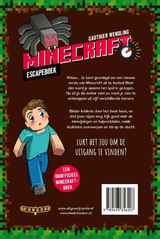 Wauw… Je bent gevraagd om een nieuwe versie van Minecraft uit te testen! Maar dan word je opeens het spel in gezogen. Nu zit je als avatar vast in de game. Blader kriskras door het boek heen, verzamel aanwijzingen en hulpmiddelen, maak bruikbare voorwerpen en sla op de vlucht. Lukt het jou om de uitgang te vinden?
