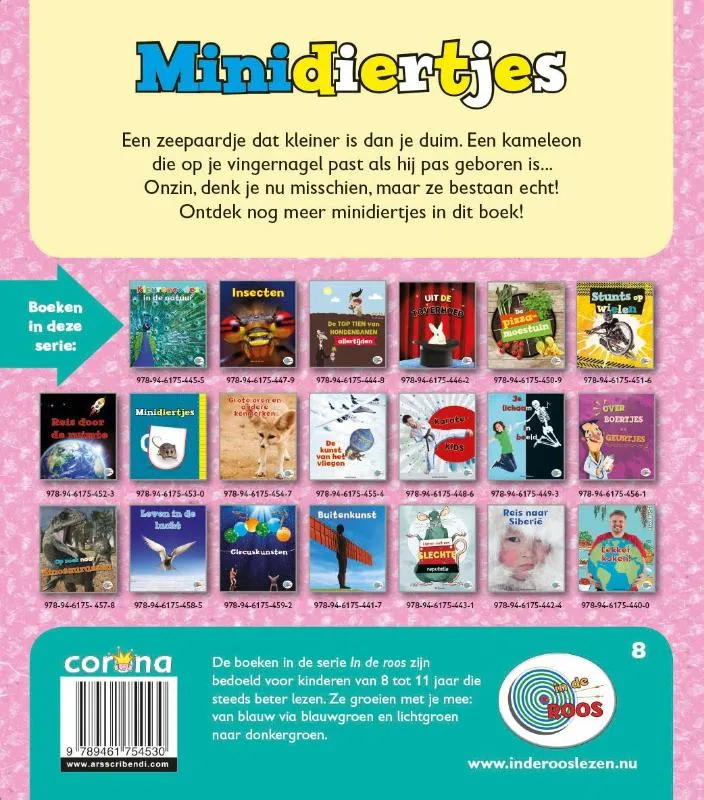 Een zeepaardje dat kleiner is dan je duim, een kameleon die op je vingernagel past als hij pas geboren is … Onzin, denk je nu misschien, maar ze bestaan echt! Ontdek nog meer minidiertjes in dit boek!