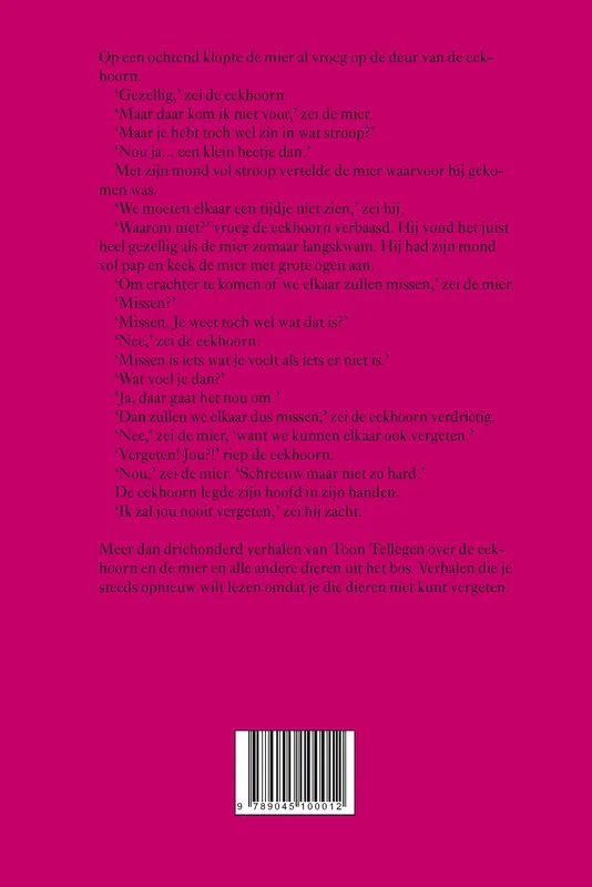 Het dikke boek met de dierenverhalen van Toon Tellegen, dat onderhand zo populair is geworden als de Bijbel, is nu uitgebreid met de bundels Brieven aan niemand anders en De verjaardag van alle anderen. Een bonus van maar liefst negenennegentig verhalen! Mance Post vulde haar veelgeprezen verzameling Vignetten voor de wereld van Tellegen aan met nieuwe diersoorten.