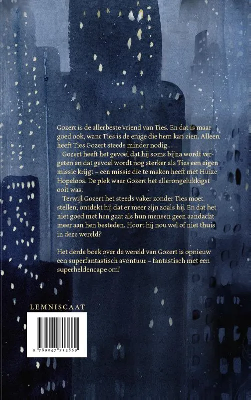 Het derde boek over de wereld van Gozert is opnieuw een superfantastisch avontuur – dat is fantastisch met een superheldencape om – maar wel een met een schurend randje. Want Gozert moet een beslissing nemen. Hoort hij nou wel of niet bij de levende kinderen?