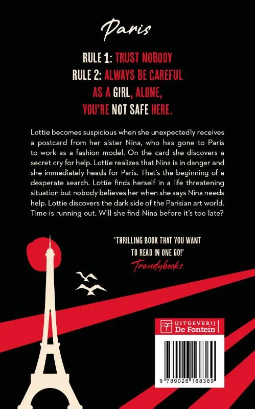 Lottie becomes suspicious when she unexpectedly receives a postcard from her sister Nina, who has gone to Paris to work as a fashion model. On the card she discovers a secret cry for help. Lottie realizes that Nina is in danger and she immediately heads for Paris. That’s the beginning of a desperate search. Lottie finds herself in a life threatening situation but nobody believes her when she says Nina needs help. Lottie discovers the dark side of the Parisian art world. Time is running out. Will she find Nina before it’s too late?
