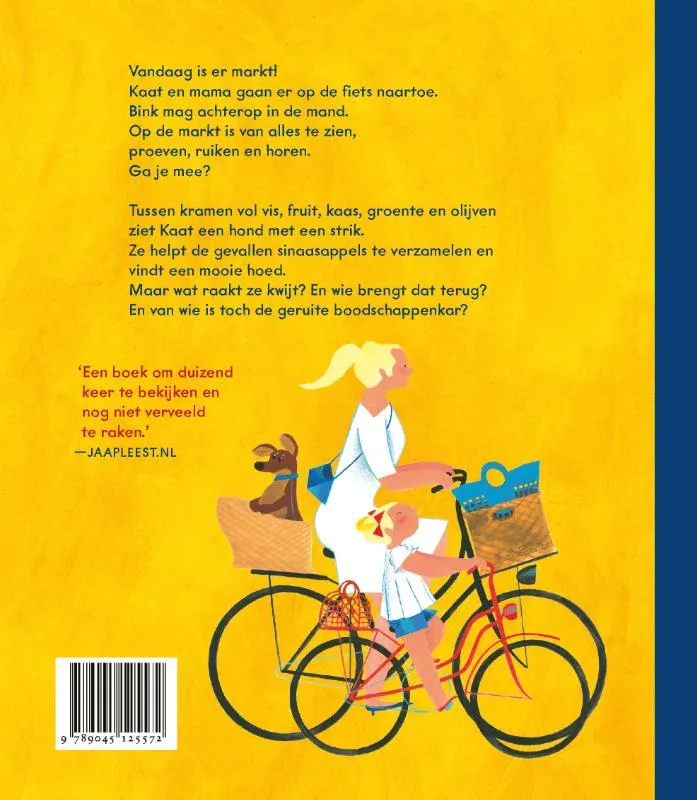 Kramen vol groente, brood, vis en kaas, maar ook met olijven en nootjes, bloemen, kleding en stoffen. Marktkooplui die hun waren aanprijzen. Een terrasje of ijscowagen tussen de kramen. In dit grote prentenboek neemt Noëlle Smit je mee naar de markt. En daar is van alles te zien, proeven, ruiken en horen!