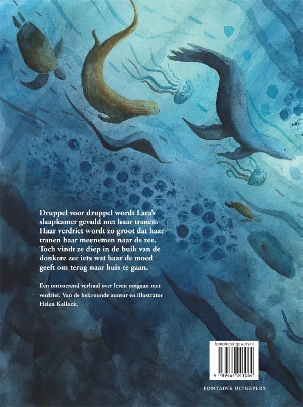 Druppel voor druppel wordt Lara’s slaapkamer gevuld met haar tranen. Haar verdriet wordt zo groot dat haar tranen haar meenemen naar de zee. Toch vindt ze diep in de buik van de donkere zee iets wat haar de moed geeft om terug naar huis te gaan.