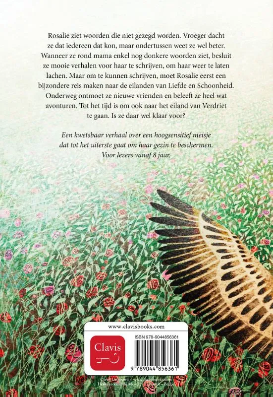 Rosalie ziet woorden die niet gezegd worden. Vroeger dacht ze dat iedereen dat kon, maar ondertussen weet ze wel beter. Wanneer ze rond mama enkel nog donkere woorden ziet of soms helemaal geen woorden, besluit ze mooie boeken te schrijven, zodat mama weer kan lachen als ze de verhalen leest. Maar om te kunnen schrijven, moet Rosalie eerst kennismaken met de liefde, schoonheid en een beetje verdriet. Naar de eilanden van Liefde en Schoonheid wil ze wel, maar Verdriet?