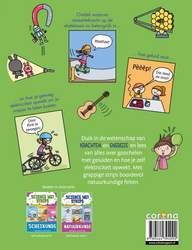 Duik in de wetenschap van krachten en energie en lees van alles over goochelen met geluiden en hoe je zelf elektriciteit opwekt. Met grappige strips boordevol natuurkundige feiten.