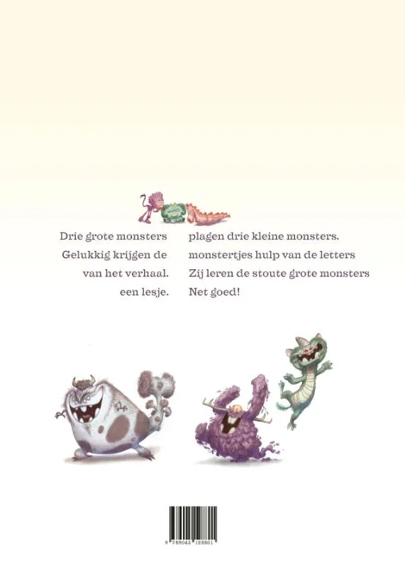 Drie grote monsters plagen drie kleine monsters. Hulp komt uit onverwachte hoek: van de woorden van het verhaal! Zij zorgen voor een zeer originele wending en plagen op hun beurt de grote monsters. Die weten niet wat ze overkomt. Net goed!