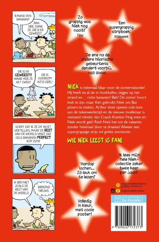 Niek is helemaal klaar voor de zomervakantie! Hij heeft nu al zin in honkballen, dagjes op het strand en… rotte bananen? Bah! De zomer hoort leuk te zijn, maar Kim gebruikt Niek om Bas jaloers te maken, Arthur doet opeens ook mee aan de tekenwedstrijd en de nieuwe invalleraar is niemand minder dan Coach Knetter. Nog even en Niek wordt gek! Redt Niek het tot de vakantie zonder helemaal door te draaien?