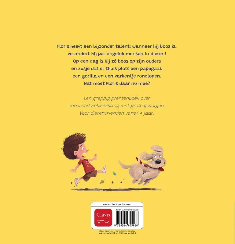 Floris heeft een bijzonder talent: wanneer hij boos is, verandert hij per ongeluk mensen in dieren! Op een dag is hij zó boos op zijn ouders en zusje dat er thuis plots een papegaai, een gorilla en een varkentje rondlopen. Wat moet Floris daar nu mee?