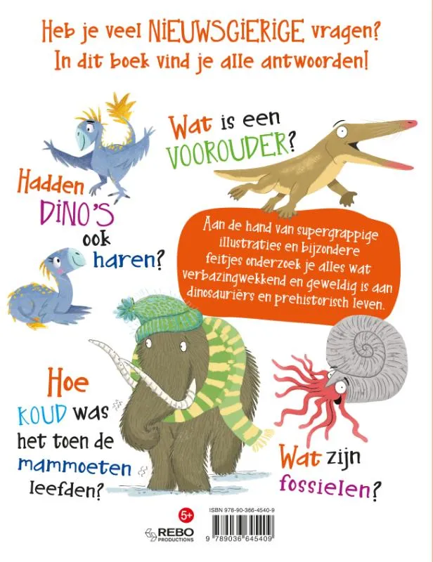 Heb je veel nieuwsgierige vragen? In dit boek vind je alle antwoorden! Aan de hand van supergrappige illustraties en bijzondere feitjes onderzoek je alles wat verbazingwekkend en geweldig is aan dinosauriërs en prehistorisch leven.