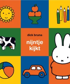 Nijntje kijkt om zich heen. Kijk je mee? Wat zie je in huis? En welke dieren zie je? Op elke pagina in het boek zitten stansvormen in verschillende groottes en vormen die de motoriek van jonge kinderen stimuleren. Leuk om aan te wijzen en woordjes te leren.