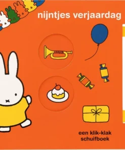 Als je aan de schuifjes trekt, hoor je een klik-klak geluid en zie je op iedere pagina een verrassing voor nijntjes verjaardag tevoorschijn komen.