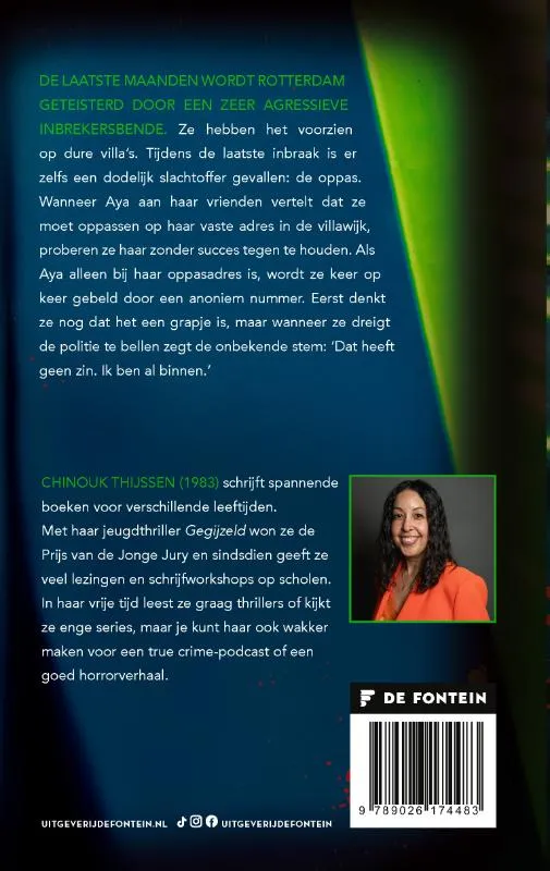 Als Aya aan het oppassen is, wordt ze gebeld door een anoniem nummer. Wie is de stem aan de andere kant van de lijn? No way out is een jeugdthriller voor 13+ van bestsellerauteur Chinouk Thijssen.