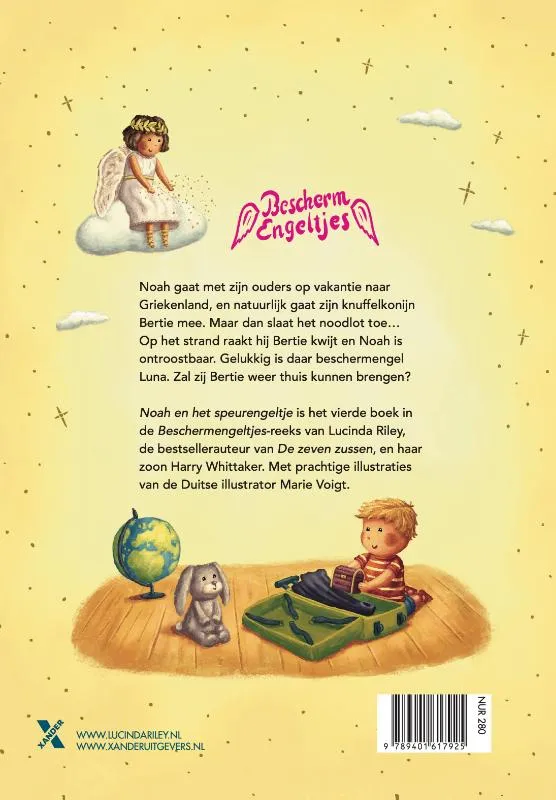 In het prachtige lees- en kijkboek Noah en het speurengeltje, het vierde deel in de Beschermengeltjes-reeks van Lucinda Riley en Harry Whittaker, gaat Noah met zijn ouders op vakantie naar Griekenland, en natuurlijk gaat zijn knuffelkonijn Bertie mee. Maar dan slaat het noodlot toe… Op het strand raakt hij Bertie kwijt en Noah is ontroostbaar. Gelukkig is daar beschermengel Luna. Zal zij Bertie weer thuis kunnen brengen?