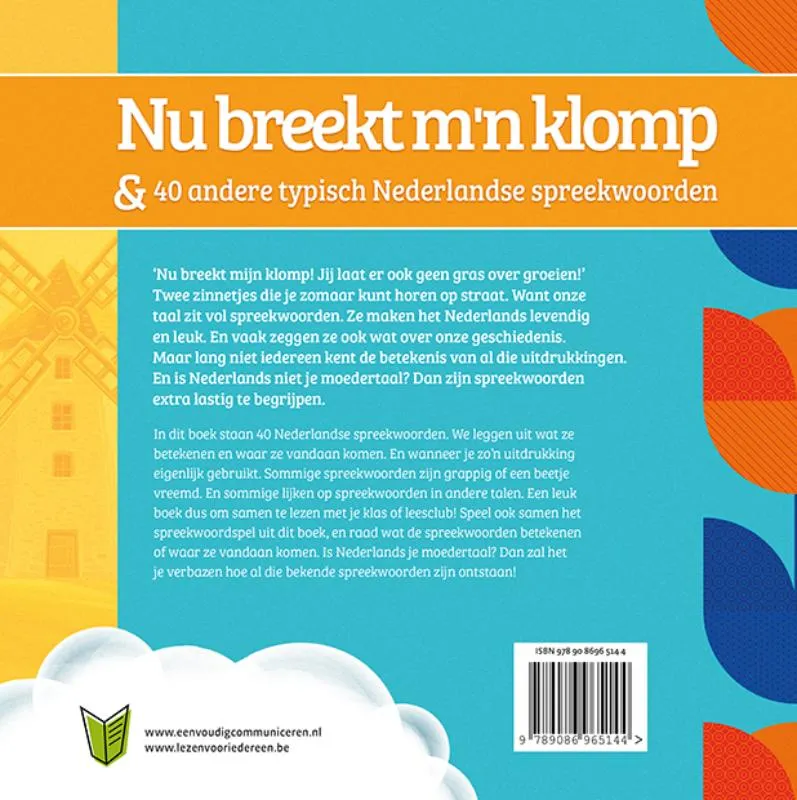 Typisch Nederlandse uitdrukkingen. Hoe vaak staan mensen niet met verbazing naar je te kijken als je een uitdrukking gebruikt? En hoe vaak wordt een spreekwoord niet verhaspeld? In dit fraai geïllustreerde boek lees je over een 40-tal Nederlandse spreekwoorden en uitdrukkingen rond drie Nederlandse thema’s.