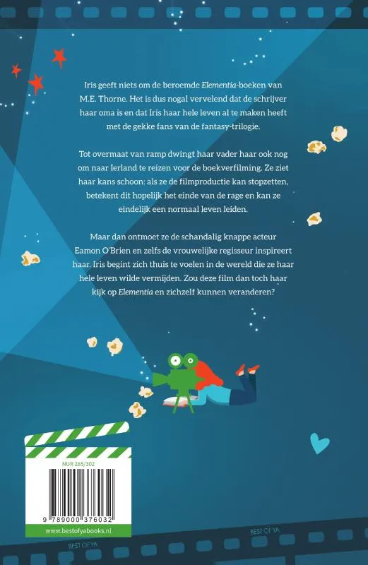 Maar dan ontmoet ze de schandalig knappe acteur Eamon O’Brien en zelfs de vrouwelijke regisseur inspireert haar. Iris begint zich thuis te voelen in de wereld die ze haar hele leven wilde vermijden. Zou deze film dan toch haar kijk op Elementia en zichzelf kunnen veranderen?