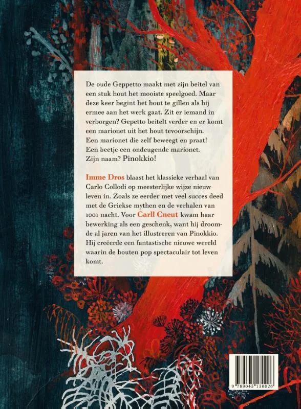 Meesterlijke hervertelling van Collodi’s Pinokkio door grootmeesters Imme Dros en Carll Cneut. Dros tovert met taal, zoals Cneut dat met zijn penseel doet. Samen brengen ze Gepetto’s beroemde houten pop op een schitterende manier tot leven. Kinderen van alle leeftijden zullen zich in deze Pinokkio herkennen.