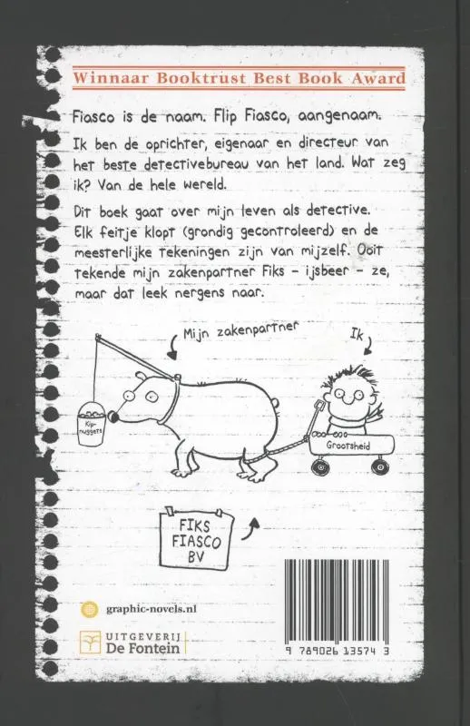 Flip Fiasco – Oeps… is een supergrappig debuut van Stephan Pastis. Een graphic novel voor de jonge fans van de serie Het leven van een Loser van Jeff Kinney. <br> <br>Fiasco is de naam. Flip Fiasco, aangenaam. <br> <br>Ik ben de oprichter, eigenaar en directeur van het beste detectivebureau van het land. Wat zeg ik? Van de hele wereld. Dit boek is een verslag van mijn leven als detective. Elk feitje klopt (grondig gecontroleerd) en de meesterlijke tekeningen zijn van mijzelf. Ooit tekende mijn zakenpartner Fiks – ijsbeer – ze, maar dat leek nergens naar. <br> <br>Stephan Pastis tekende Pearls Before Swine, een grappige strip die in meer dan 650 kranten verscheen en later ook in boeken. Flip Fiasco – Oeps… is zijn eerste kinderboek. Stephan woont in Amerika.
