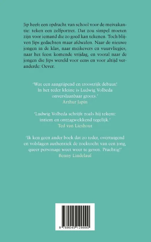 Jip heeft een opdracht van school voor de meivakantie: teken een zelfportret. Dat zou simpel moeten zijn voor iemand die zo goed kan tekenen. Toch blijven Jips gedachten maar afdwalen. Naar de nieuwe jongen in de klas, naar meikevers en vuurvliegjes, naar het feest komende vrijdag, en vooral naar de jongen die Jips wereld voor eens en voor altijd veranderde: Oever.