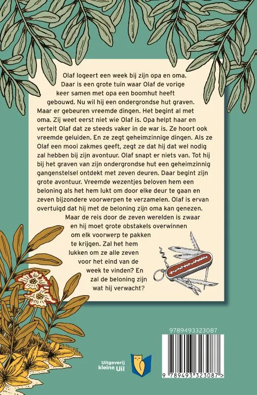Olaf logeert een week bij zijn opa en oma. Daar is een grote tuin waar Olaf de vorige keer samen met opa een boomhut heeft gebouwd. Nu wil hij een ondergrondse hut graven. Maar er gebeuren vreemde dingen. Het begint al met oma. Zij weet eerst niet wie Olaf is. Opa helpt haar en vertelt Olaf dat ze steeds vaker in de war is. Ze hoort ook vreemde geluiden. En ze zegt geheimzinnige dingen. Als ze Olaf een mooi zakmes geeft, zegt ze dat hij dat wel nodig zal hebben bij zijn avontuur. Olaf snapt er niets van. Tot hij bij het graven van zijn ondergrondse hut een geheimzinnig gangenstelsel ontdekt met zeven deuren. Daar begint zijn grote avontuur. Vreemde wezentjes beloven hem een beloning als het hem lukt om door elke deur te gaan en zeven bijzondere voorwerpen te verzamelen. Olaf is ervan overtuigd dat hij met de beloning zijn oma kan genezen. Maar de reis door de zeven werelden is zwaar en hij moet grote obstakels overwinnen om elk voorwerp te pakken te krijgen. Zal het hem lukken om ze alle zeven voor het eind van de week te vinden? En zal de beloning zijn wat hij verwacht?