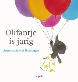 Feestelijk kartonboek over jarig zijn van Gouden Penseel-winnares Annemarie van Haeringen.