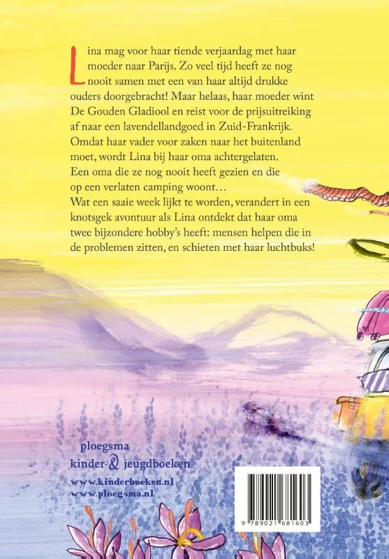 <br>Lina’s oma blijkt samen met een teckel in een blokhut op een verlaten camping te wonen. En wat een megasaaie week leek te gaan worden, verandert in een ruig avontuur als Lina ontdekt dat haar oma twee bijzondere hobby’s heeft: opkomen voor mensen die in de problemen zitten, en schieten met haar luchtbuks. En die twee hobby’s gaan prima samen!