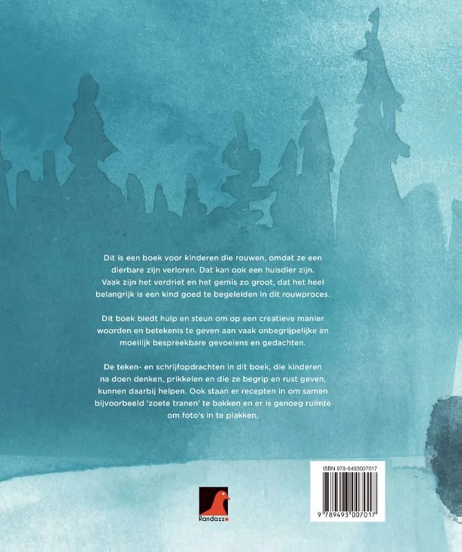 Een boek voor kinderen over het gemis van een dierbare (kan ook een huisdier zijn). Dit boek biedt goede hulp bij het begeleiden van het rouwproces, door middel van creatieve opdrachten. Kinderen leren woorden en betekenis te geven aan hun gevoelens en gedachten. Teken- en schrijfopdrachten, maar ook recepten om ‘zoeten tranen’ te bakken en ruimte om foto’s in te plakken.