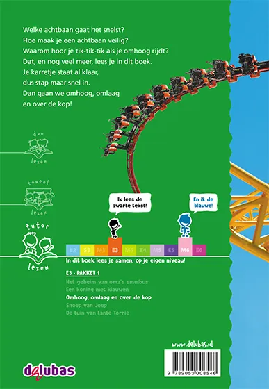 Omhoog, omlaag en over de kop is een boek uit het E3 pakket 1 tutorlezen van Uitgeverij Delubas, speciaal ontwikkeld voor tutorlezen, met E3 als leesniveau voor de beginnende of zwakkere lezer.