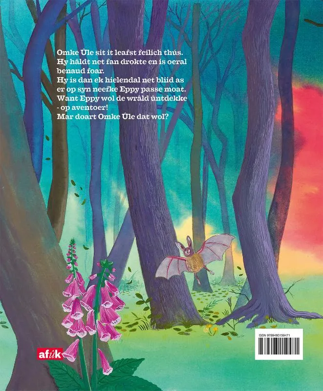 Omke Ûle sit it leafst feilich thús. Hy hâldt net fan drokte en is oeral benaud foar. Hy is dan ek hielendal net bliid as er op syn neefke Eppy passe moat. Want Eppy wol de wrâld ûntdekke – op aventoer! Mar doart Omke Ûle dat wol?
