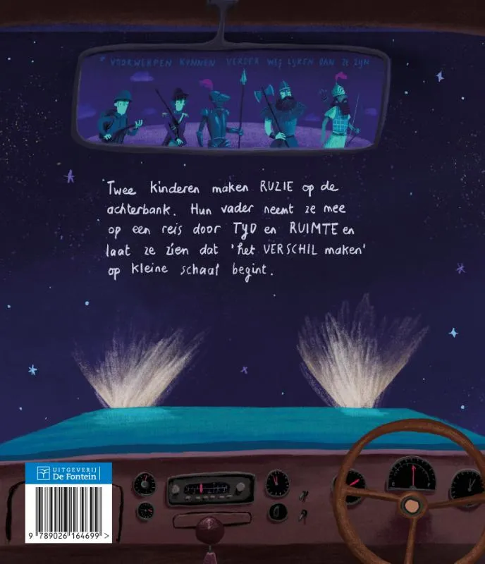 Nieuw van Oliver Jeffers! Twee kinderen maken ruzie op de achterbank. Hun vader neemt ze mee op een reis door tijd en ruimte, en laat ze zien dat het verschil maken op kleine schaal begint.<br> <br>