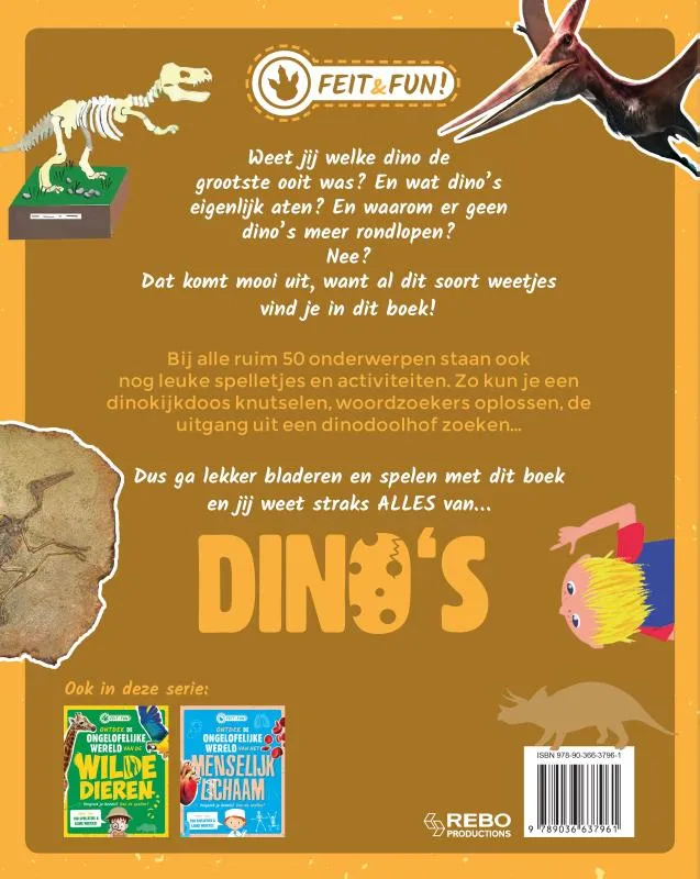 Weet jij welke dino de grootste ooit was? En wat dino’s eigenlijk aten? En waarom er geen dino’s meer rondlopen? Nee? Dat komt mooi uit, want al dit soort weetjes vind je in dit boek!