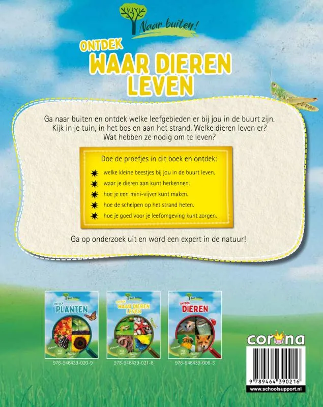 Welke leefgebieden zijn er bij jou in de buurt? Welke dieren leven er? En wat hebben ze nodig om te overleven? Met de proefjes in dit boek word je een expert in de natuur!