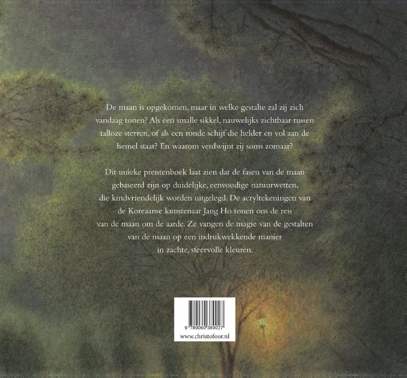 Dit unieke prentenboek laat zien dat de fasen van de maan gebaseerd zijn op duidelijke, eenvoudige natuurwetten, die kindvriendelijk worden uitgelegd. De acryltekeningen van de Koreaanse kunstenaar Jang Ho tonen ons het verloop van de maan aan de nachtelijke hemel en vangen de magie van deze constante verandering op een indrukwekkende manier in zachte nachtkleuren.