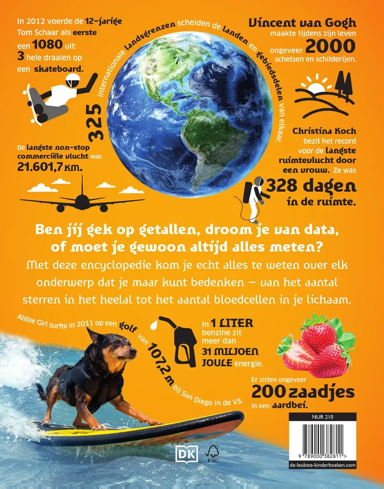 Leer hoeveel verdiepingen het hoogste gebouw ter wereld heeft of hoe lang een potvis zijn adem kan inhouden. En weet jij al hoe lang het duurt om een ruimtepak aan te trekken? Of hoe vaak een luiaard in een week poept? Hoeveel stenen zitten er eigenlijk in de Grote Piramide van Gizeh? En welk percentage van je hersenen gebruik je nou echt? De antwoorden op deze vragen én nog eindeloos veel meer vind je allemaal in dit boek!
