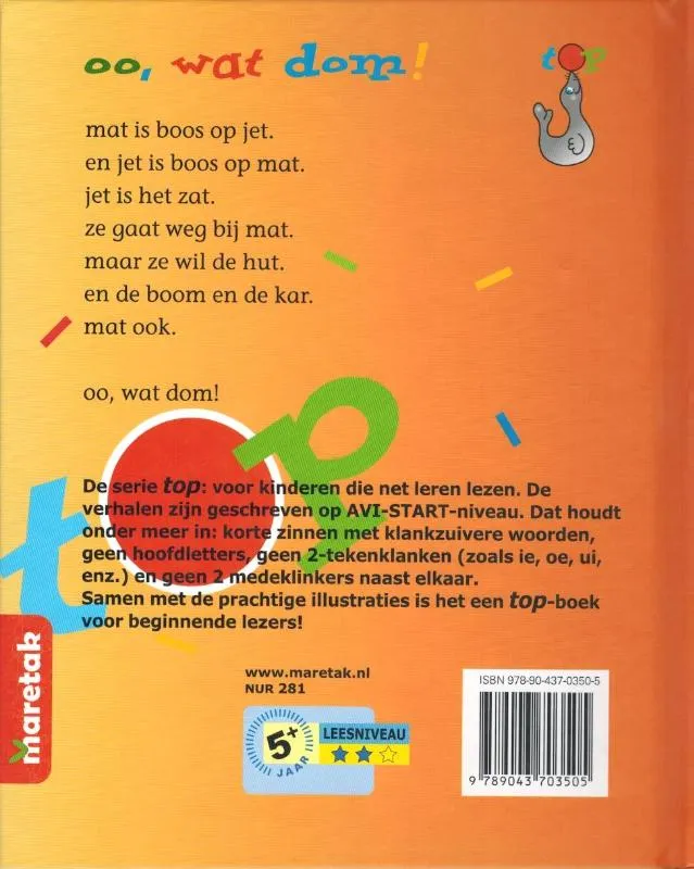 Dit Top-boek is geschreven op AVI Start niveau en is geschikt voor oudste kleuters die al veel letters kennen en voor kinderen in begin groep 3.