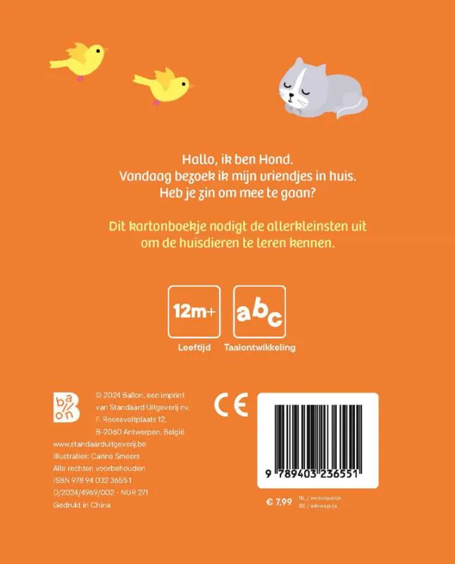Dit kartonboekje nodigt de allerkleinsten uit om de huisdieren te leren kennen.