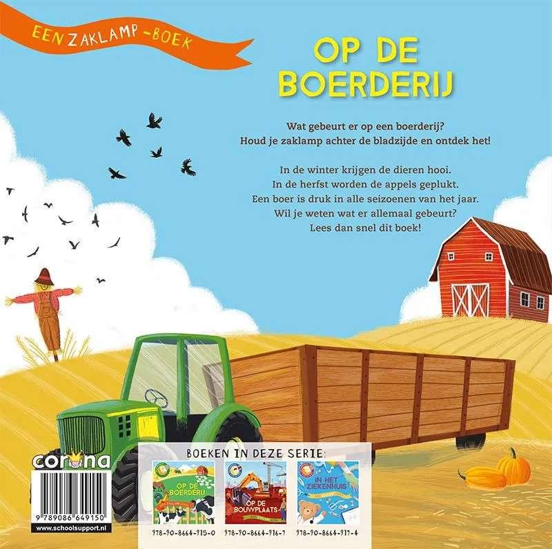 Wat gebeurt er op een boerderij? Houd je zaklamp achter de bladzijde en ontdek het!