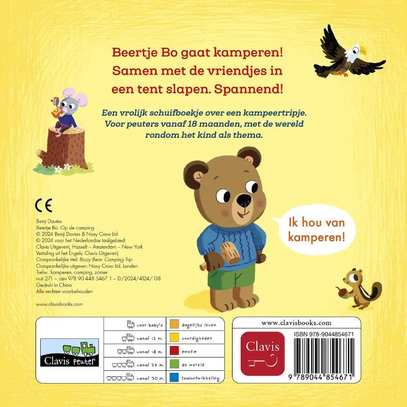 Een vrolijk schuifboekje over een kampeertripje. Voor peuters vanaf 18 maanden, met de wereld rondom het kind als thema.