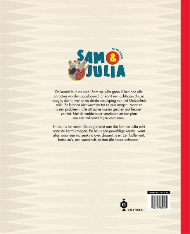 Het is kermis in de stad in dit vierde deel uit de prentenboekenreeks over Het Muizenhuis. Sam en Julia gaan kijken naar hoe alle attracties worden opgebouwd. Er is een ballentent, een angstaanjagend spookhuis en een reusachtige achtbaan die zo hoog is dat hij wel tot de derde verdieping van het Muizenhuis reikt. De twee vrienden kunnen niet wachten tot ze erin mogen. Maar er is een probleem: alle attracties kosten geld en hun portemonnee is niet bepaald gevuld. Met de voddenboer verzinnen ze een slim plan om wat extra zakgeld te verdienen. En met succes! Sam en Julia beleven een onvergetelijke dag op de kermis.