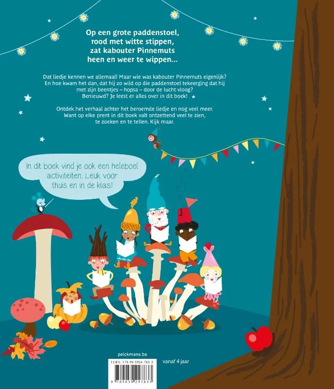 Dat liedje kennen we allemaal! Maar wie was kabouter Pinnemuts eigenlijk? En hoe kwam het dan, dat hij zo wild op die paddenstoel tekeerging dat hij met zijn beentjes – hopsa – door de lucht vloog? Benieuwd? Je leest er alles over in dit boek! Ontdek het verhaal achter het beroemde liedje en nog veel meer. Want op elke prent in dit boek valt ontzettend veel te zien, te zoeken en te tellen. Kijk maar.