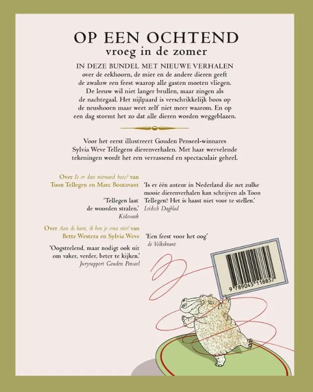 Voor het eerst illustreert Gouden Penseel-winnares Sylvia Weve Tellegens dierenverhalen. Met haar wervelende tekeningen wordt het een verrassend en spectaculair geheel.