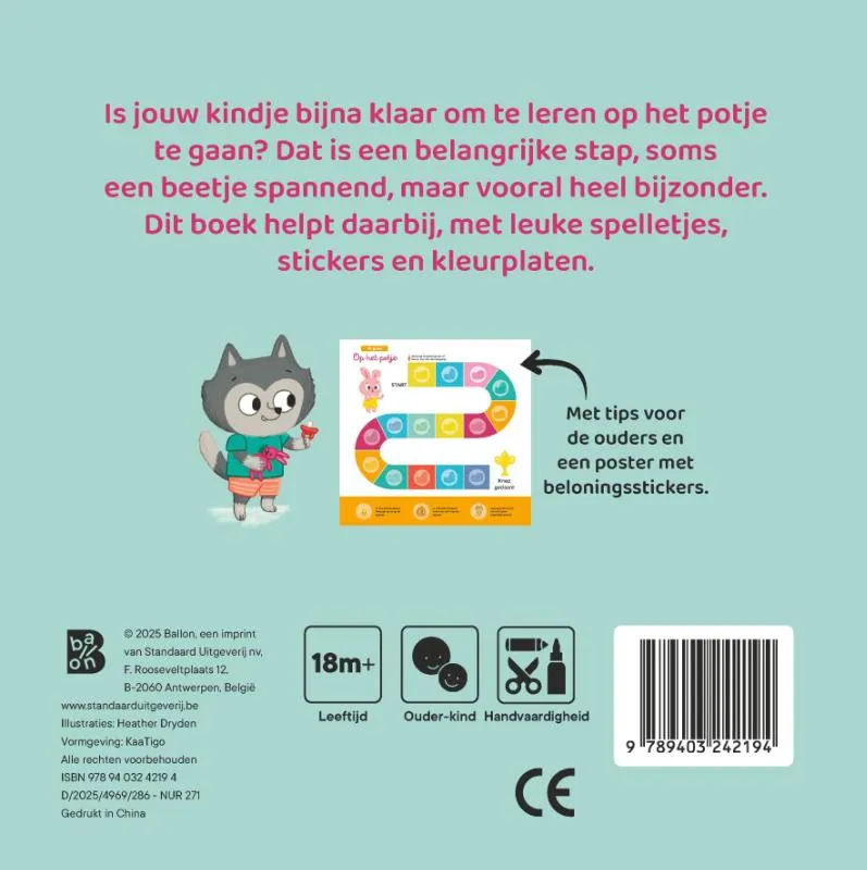 Zindelijkheid is voor veel kinderen (en hun ouders) een belangrijke mijlpaal. Dit spelletjesboek maakt het thema van het potje bespreekbaar en biedt handvaten. Met tips voor de ouders en een poster met beloningsstickers voor de kleintjes!