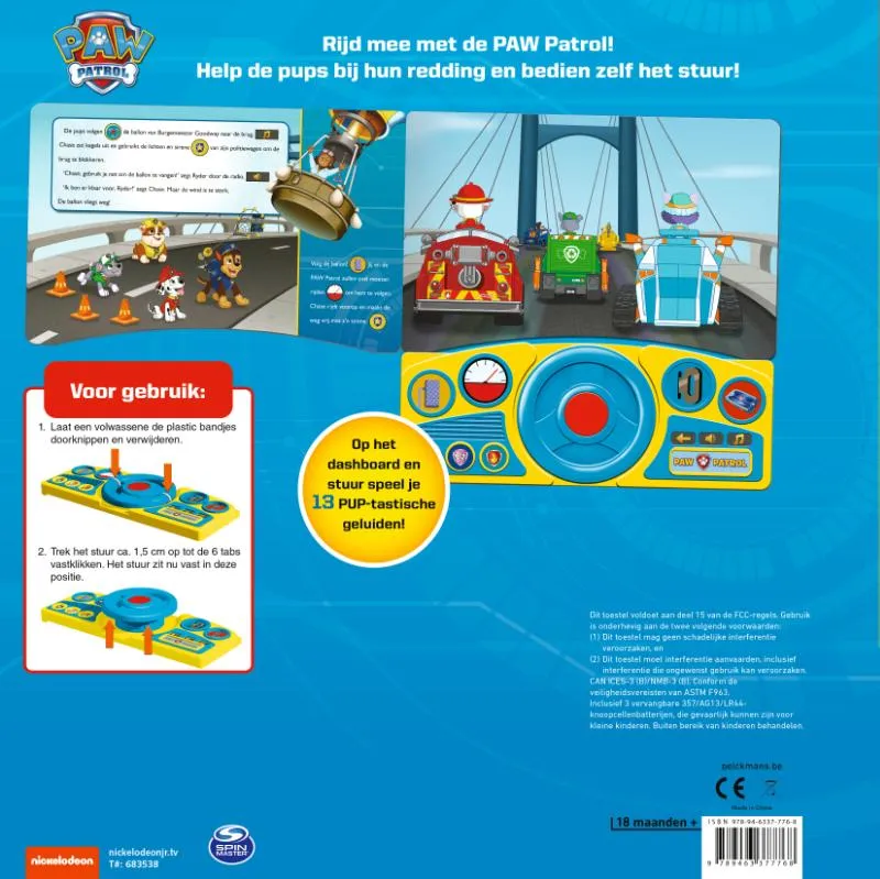 Ryder, Chase en de andere pups moeten burgemeester Goodway zien te redden, want haar heteluchtballon kwam in een hevige windstorm terecht. De pups starten hun voertuigen en maken zich klaar voor de redding! Bedien de module en speel 12 geweldige geluiden. Met je eigen stuurwiel rijd jij zelf mee doorheen het verhaal – want geen klus is te groot, geen pup is te klein voor de PAW Patrol!
