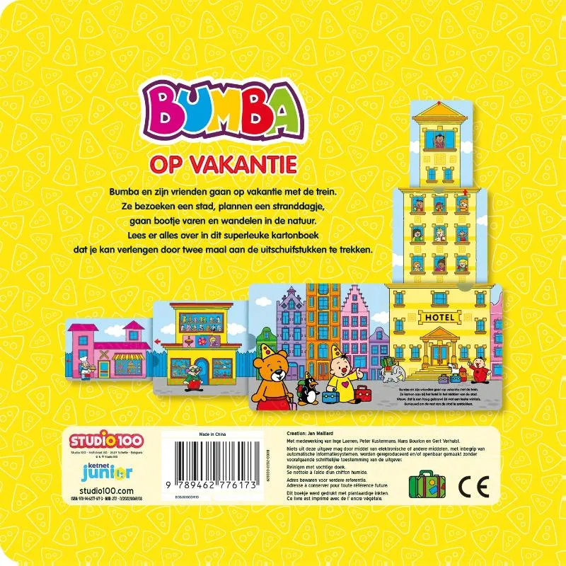 Bumba en zijn vrienden gaan op vakantie met de trein. Ze bezoeken een stad, plannen een stranddagje, gaan bootje varen en wandelen in de natuur. Lees er alles over in dit superleuke kartonboek dat je kan verlengen door twee maal aan de uitschuifstukken te trekken.