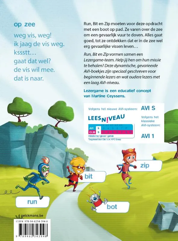 Het vuur op zee moet uit. Rin, Bit en Zip gaan in een boot. Maar wat zien ze onder de boot? AVI-Start. Vanaf ca. 6 jaar.