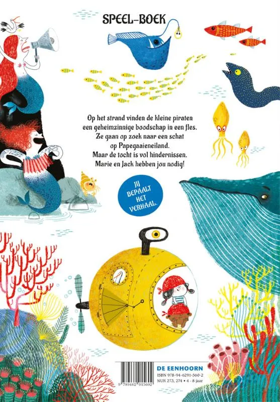 Op het strand vinden de kleine piraten een geheimzinnige boodschap in een fles. Op Papegaaieneiland ligt er een schat. Maar de tocht is vol hindernissen. Marie en Jack hebben jou nodig!