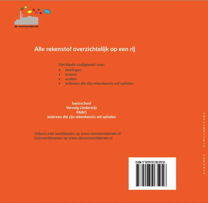 Opzoekboekje rekenen voor de basisschool en voor iedereen die zijn rekenkennis wil opfrissen. Het boekje bevat de complete rekenstof voor de basisschool. Met veel duidelijke kleurrijke illustraties.