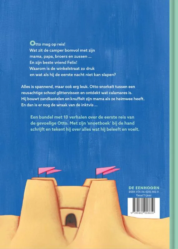 Otto mag mee op reis! Samen met zijn mama, papa, broer en zus en zijn beste vriend Felix gaan ze met een bomvolle camper naar zee. Het wordt een drukke, maar geweldige vakantie, waarin hij snorkelt tussen een reusachtige school vissen en ontdekt wat calamares is. En wat is de wraak van de inktvis? Elke avond mag hij tekenen en schrijven in zijn ‘snoetboek’. Zo zet hij alles op een rijtje en raakt zijn hoofd weer leeg. Hij leert ook dat iedereen wel eens last kan hebben van heimwee – zélfs mama …