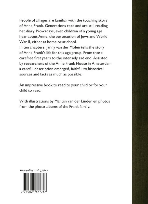 Het verhaal van Anne Frank grijpt mensen nog steeds aan. Miljoenen jongeren en volwassenen lezen haar dagboek en ook jonge kinderen horen thuis of op school over Anne, de Jodenvervolging en de Tweede Wereldoorlog. Met hun klas of familie bezoeken zij het Anne Frank Huis. Uitgeverij Ploegsma vatte daarom het plan op om speciaal voor kinderen vanaf acht jaar een boek te maken. Het doel: een zorgvuldige en liefdevolle beschrijving van Annes leven die inhoudelijk zo dicht mogelijk bij de historische bronnen en feiten blijft. Janny van der Molen aanvaardde die uitdaging. Zij dook in de archieven, bezocht de woning van de familie Frank aan het Merwedeplein en het Achterhuis aan de Prinsengracht, reisde naar Westerbork, Auschwitz en Bergen-Belsen, en schreef een indrukwekkend (voor)leesboek.