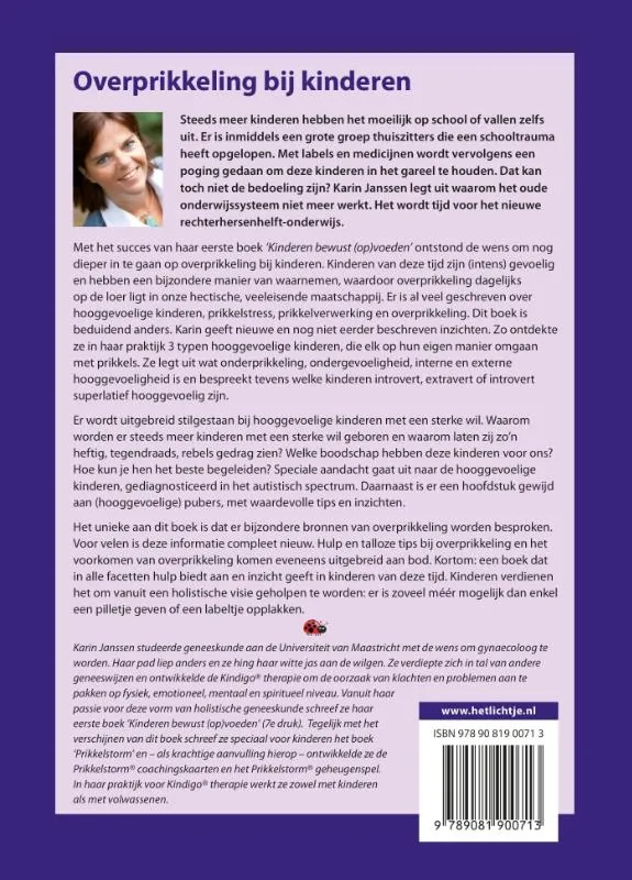 Het unieke aan dit boek is dat er bijzondere bronnen van overprikkeling worden besproken. Voor velen is deze informatie compleet nieuw. Hulp en talloze tips bij overprikkeling en het voorkomen van overprikkeling komen eveneens uitgebreid aan bod. Kortom: een boek dat in alle facetten hulp biedt aan en inzicht geeft in kinderen van deze tijd. Kinderen verdienen het om vanuit een holistische visie geholpen te worden: er is zoveel méér mogelijk dan enkel een pilletje geven of een labeltje opplakken.
